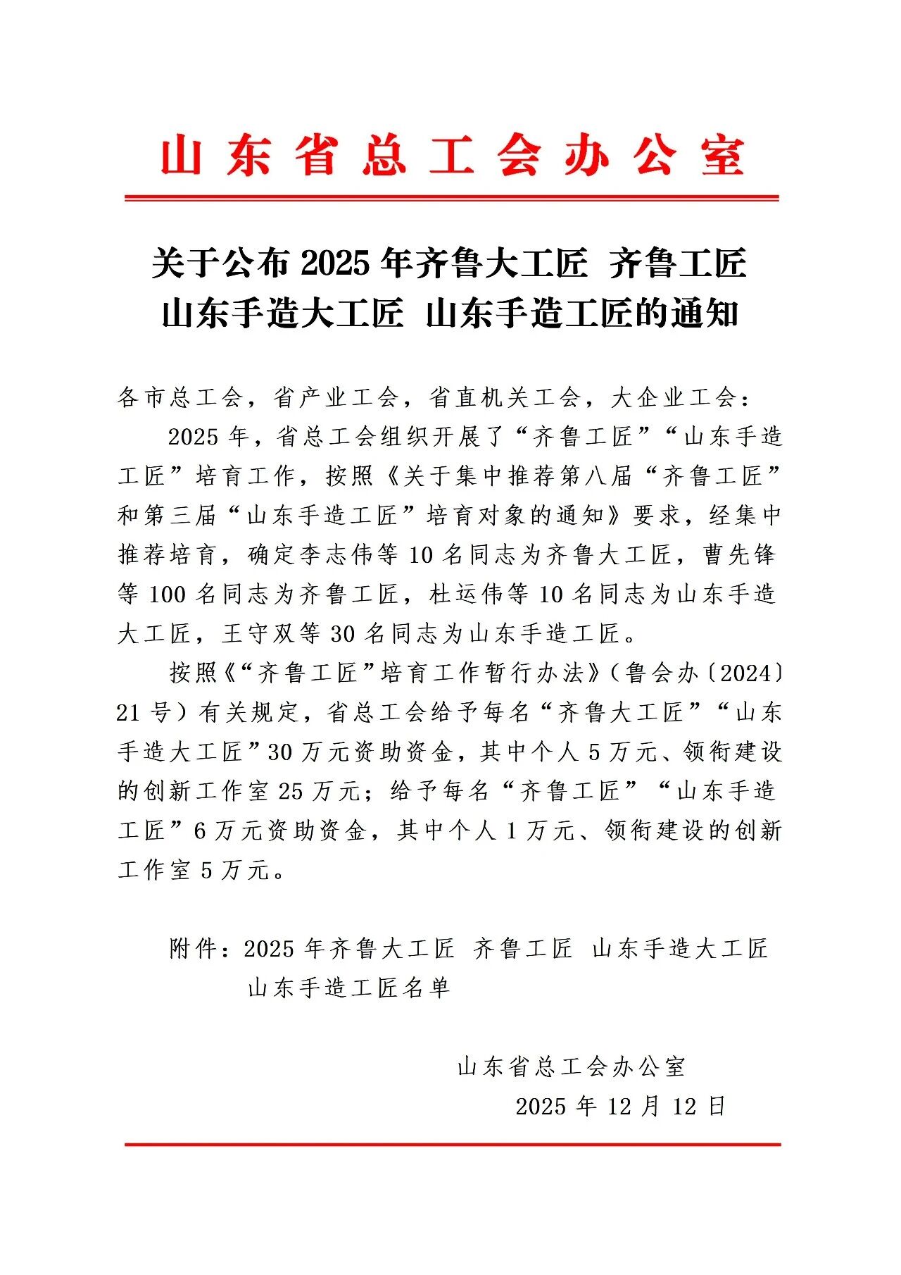 【工會動態(tài)】匠心繪魯韻!百合園林設(shè)計院徐偉獲評“山東手造工匠”