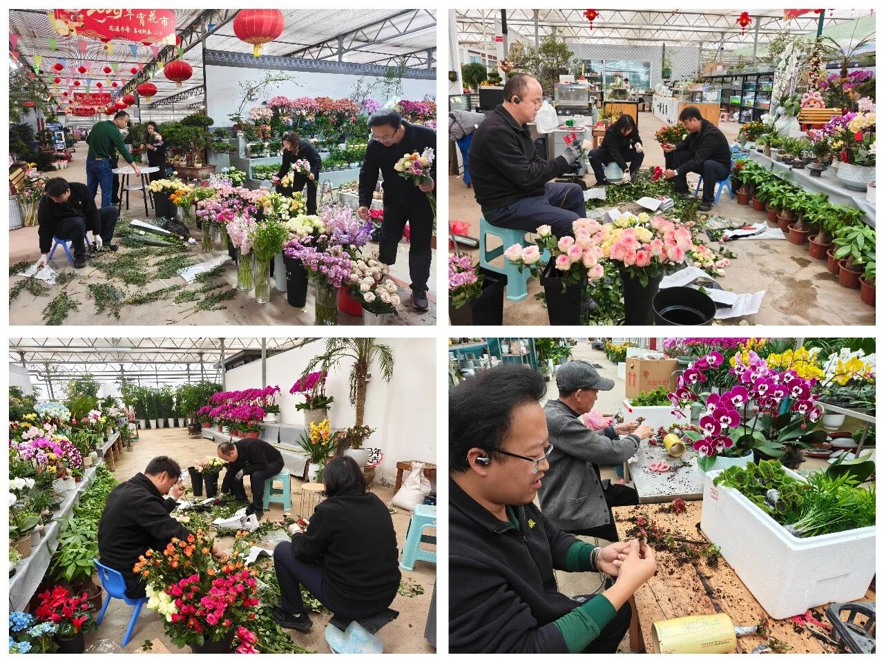 為滿足不同單位的個性化需求,花藝師們精心定制活動方案,從花材選配到主題設(shè)計都力求貼合節(jié)日氛圍與參與者心意。他們還提供上門指導(dǎo)服務(wù),將花藝課堂直接送到各單位,讓參與者足不出戶便能享受插花樂趣。市場職工也加班加點備足貨源,確保每一場活動花材新鮮、供應(yīng)充足?;ㄋ噹焸兲崆胺磸?fù)備課,以專業(yè)講解和耐心示范,帶領(lǐng)大家在一枝一葉中感受生活美學(xué)。