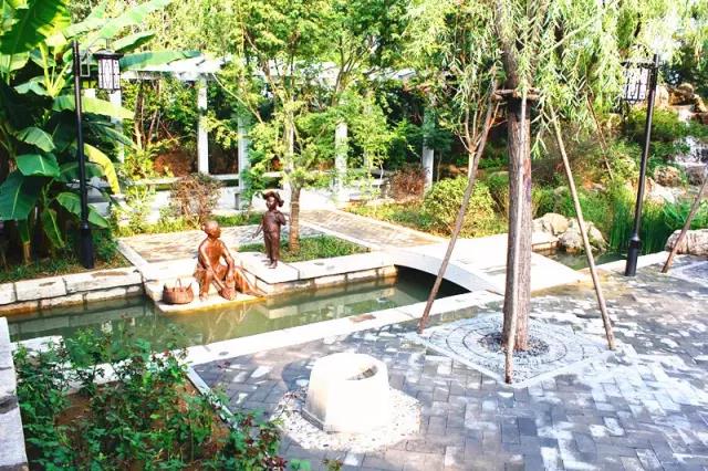 關于百姓生活的展示方面,主要以街巷與民居的形式,通過提取具有濟南印象的水街、院落布局等,展示在泉水影響下的濟南百姓生活特點,如汲水、泉水洗衣、老虎灶泉水煮茶、以及走街串巷售賣的生活場景,通過老物件、老照片、室內(nèi)展示、聲音等形式在園中展示,同時提取了濟南老城巷的建筑元素、老城色彩、代表植物,運用傳統(tǒng)造園手法,通過墻與巷的布局特點予以展示。