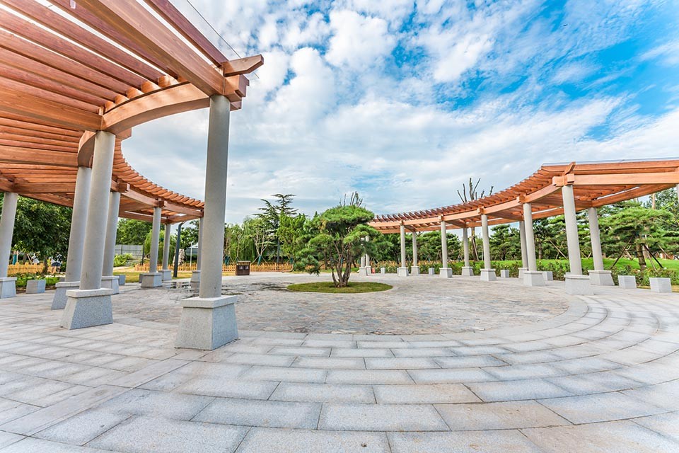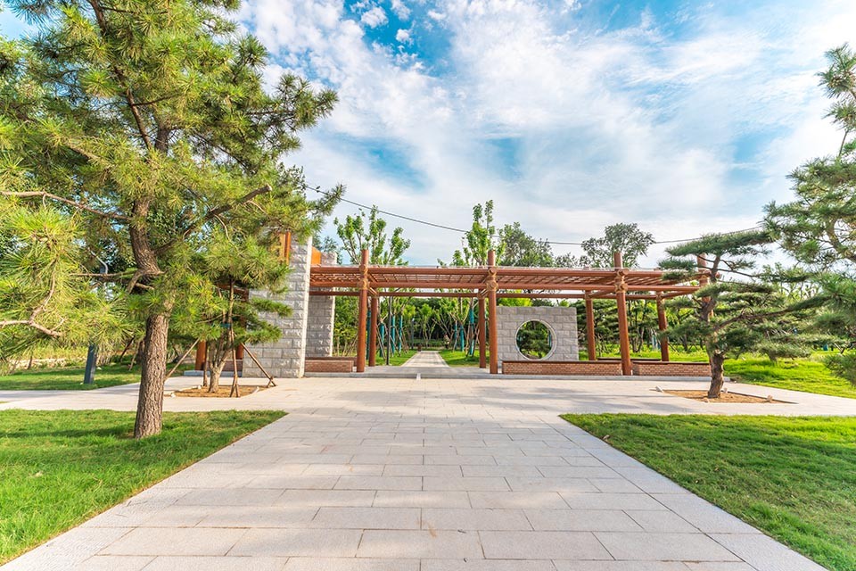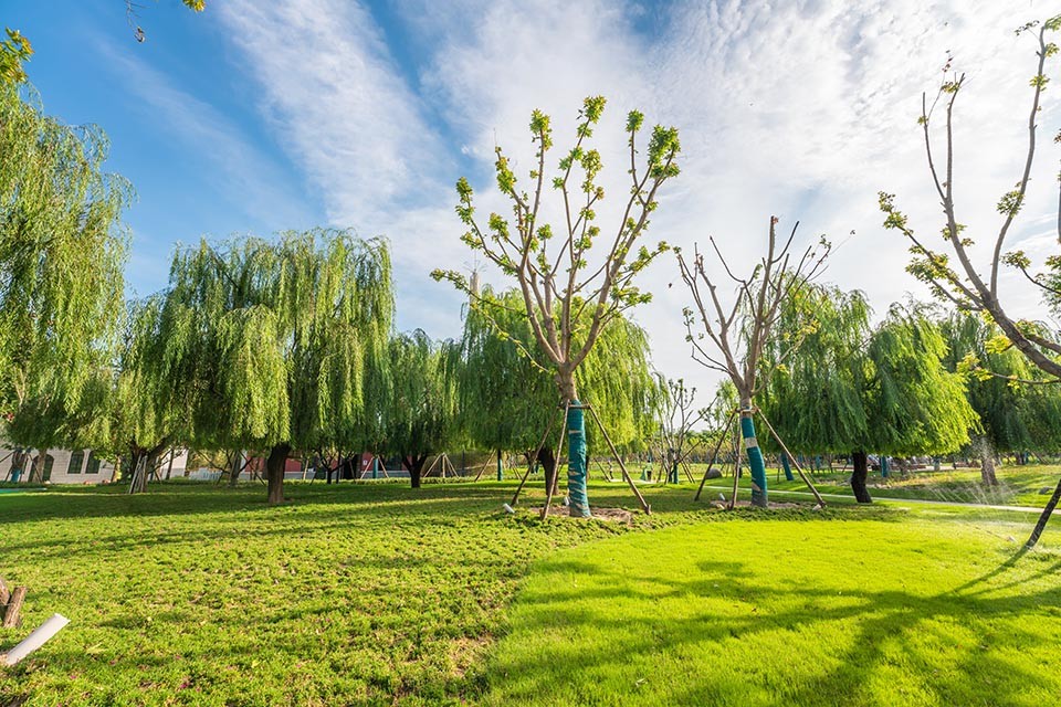 由百合園林集團(tuán)承建的濟(jì)南黃河百里風(fēng)景區(qū)中心景區(qū)景觀提升項(xiàng)目四標(biāo)段位于鵲華樓東節(jié)點(diǎn)(東段),本標(biāo)段施工面積約9.43公頃。主要建設(shè)包括:苗木栽植、敷設(shè)管線(xiàn)、園路廣場(chǎng)鋪裝、新建廊架、自行車(chē)驛站等內(nèi)容,并對(duì)鵲華樓東節(jié)點(diǎn)、對(duì)應(yīng)堤頂路兩側(cè)5m范圍內(nèi)綠化養(yǎng)護(hù)及景區(qū)東側(cè)斜坡綠地養(yǎng)護(hù)。