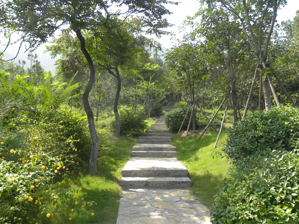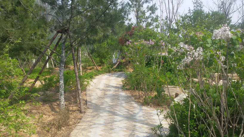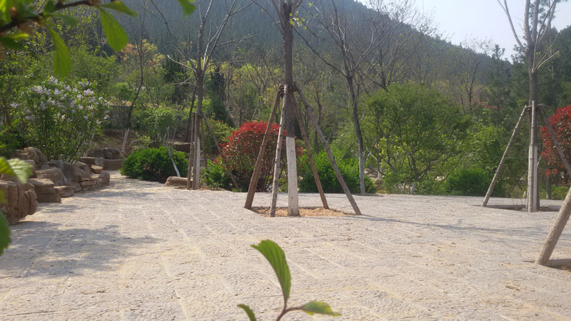 設計理念:項目在施工過程中,以“自然、生態(tài)、因地制宜”為指導思想,在保護景區(qū)原有景觀的基礎上,完善和豐富景觀內容及服務設施,新增廣場、游覽道路、健身平臺、旱溪及景觀擋墻等,并根據(jù)景區(qū)規(guī)劃定位及山體特征進行綠化。力爭通過本項目建設,突出景區(qū)獨有的文化個性,滿足游人休閑、健身及旅游發(fā)展的需求。