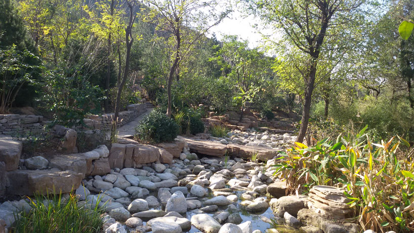 項目新建旱溪、導水槽等,增加了雨水的收集及滲透量,起到“滯、吸、凈、蓄”的作用,需要時還可將蓄存的水“釋放”出來、加以利用,同時也增加了景區(qū)自然生態(tài)的景觀效果。