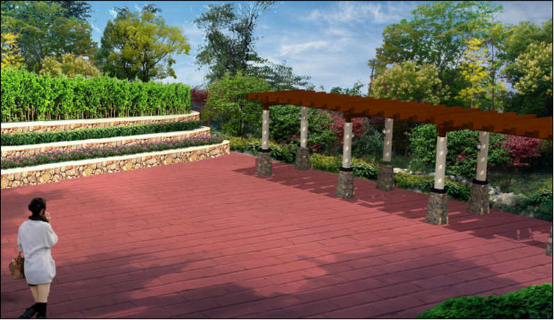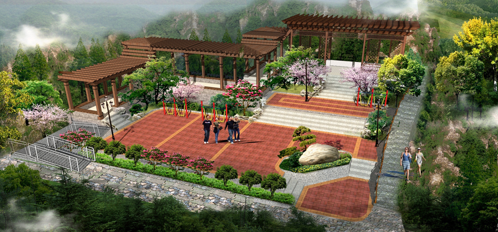 休憩廣場規(guī)劃——公園局部開闊場地、山坳處、道路交匯點規(guī)劃小型休憩廣場,為游人提供更好的活動空間。
