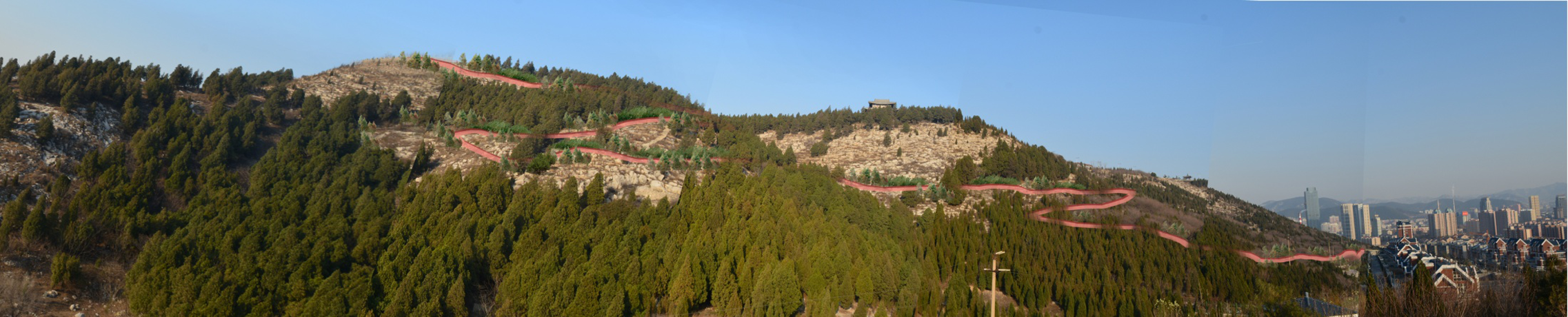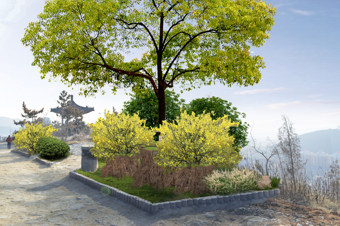 部分山頂區(qū)域規(guī)劃設(shè)計——根據(jù)公園現(xiàn)狀,對部分山頂區(qū)域進行科學合理規(guī)劃,增建便民及管理配套設(shè)施。整體風格樸素自然,與自然融為一體,打造特色景觀片區(qū),并增加休閑設(shè)施和基礎(chǔ)服務(wù)設(shè)施,使郎茂山公園成為濟南南部有郊野特色的城市公園。