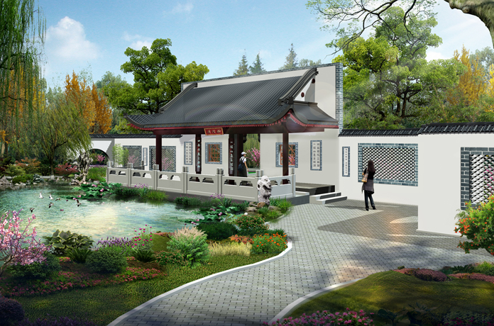 園區(qū)共設(shè)置新泉新韻、騰蛟起鳳景門、疊石清泉、清泉石澗、綠影清韻廣場、芙蕖臺、泉韻詩情景墻、荷苑清廊、泉城印象等景點(diǎn),通過曲折的園路及水系連接起來。以清波榭為主的一組臨水建筑是園區(qū)的主景,形成“碧水成鏡映詩情,綠柳如絲添畫意”的詩畫意境。