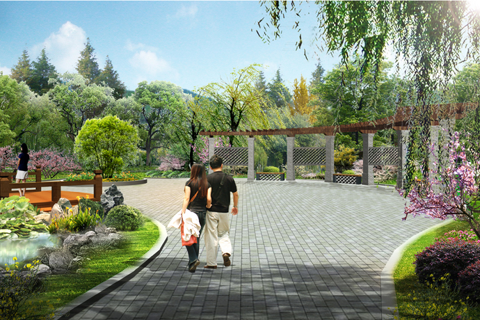 濟(jì)南園占地面積約2500㎡,以“生態(tài)泉溪,悠然濟(jì)南”為主題。全園運(yùn)用自然式布局手法,圍繞匯波湖,分為中部“蓮湖勝景”、西部“柳荷碧漪”、東部“臨波尋趣”三區(qū),各區(qū)之間互為借景與對景。