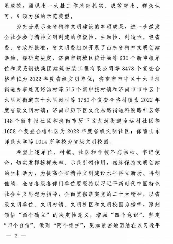 近日,山東省精神文明建設(shè)委員會(huì)下發(fā)了《關(guān)于公布2022年度省級(jí)文明單位、文明村鎮(zhèn)、文明社區(qū)和往屆復(fù)查合格省級(jí)文明校園創(chuàng)建名單的通報(bào)》,百合園林集團(tuán)喜獲“省級(jí)文明單位”榮譽(yù)稱號(hào)。